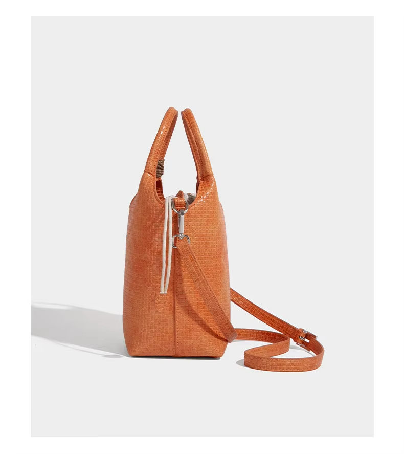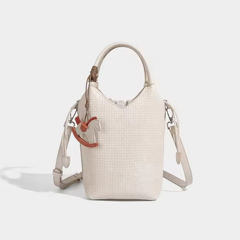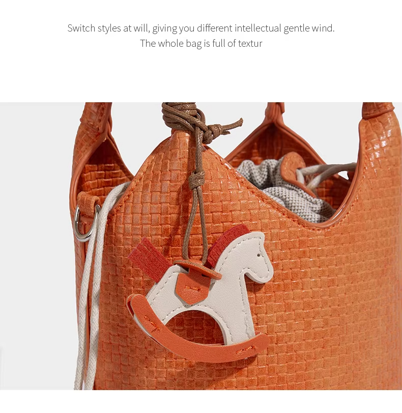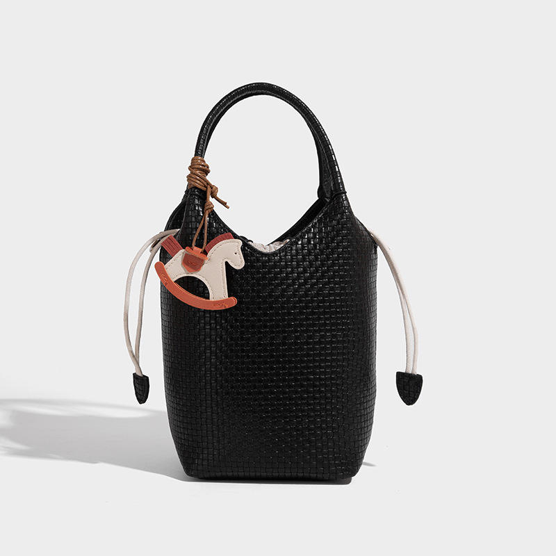 • 2025 Luxury Bucket Bags with Leather Handles Small Cross-body PU Woven Tote Brand Trending Bags With Horse Charm Element