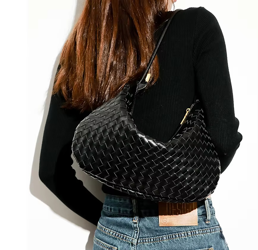 • Casual Sling Bag Small Fresh Ladies Braided Cowhide Underarm Shoulder Bag PU Leather Woven Bag